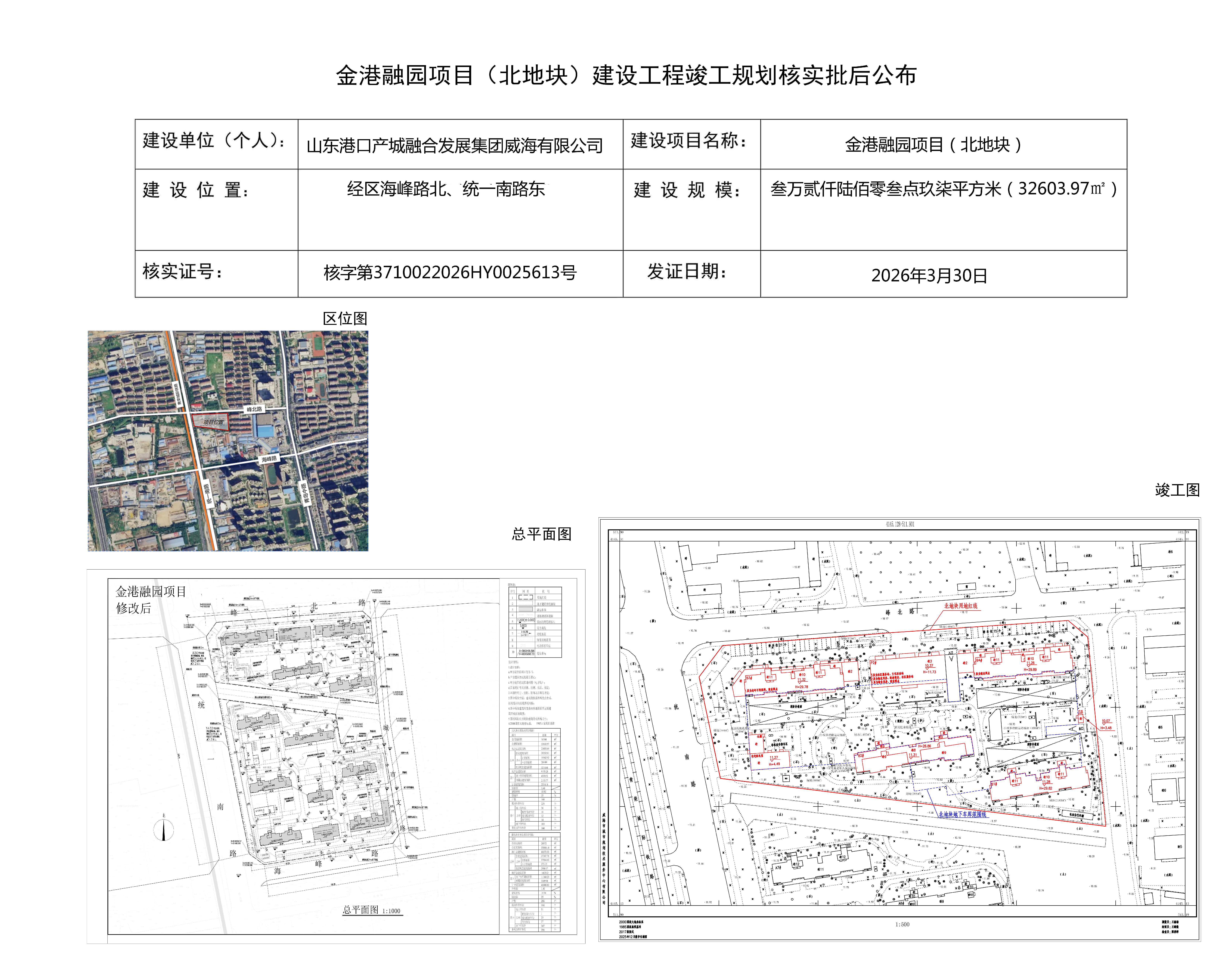 金港融园项目(北地块)建设工程竣工规划核实批后公布