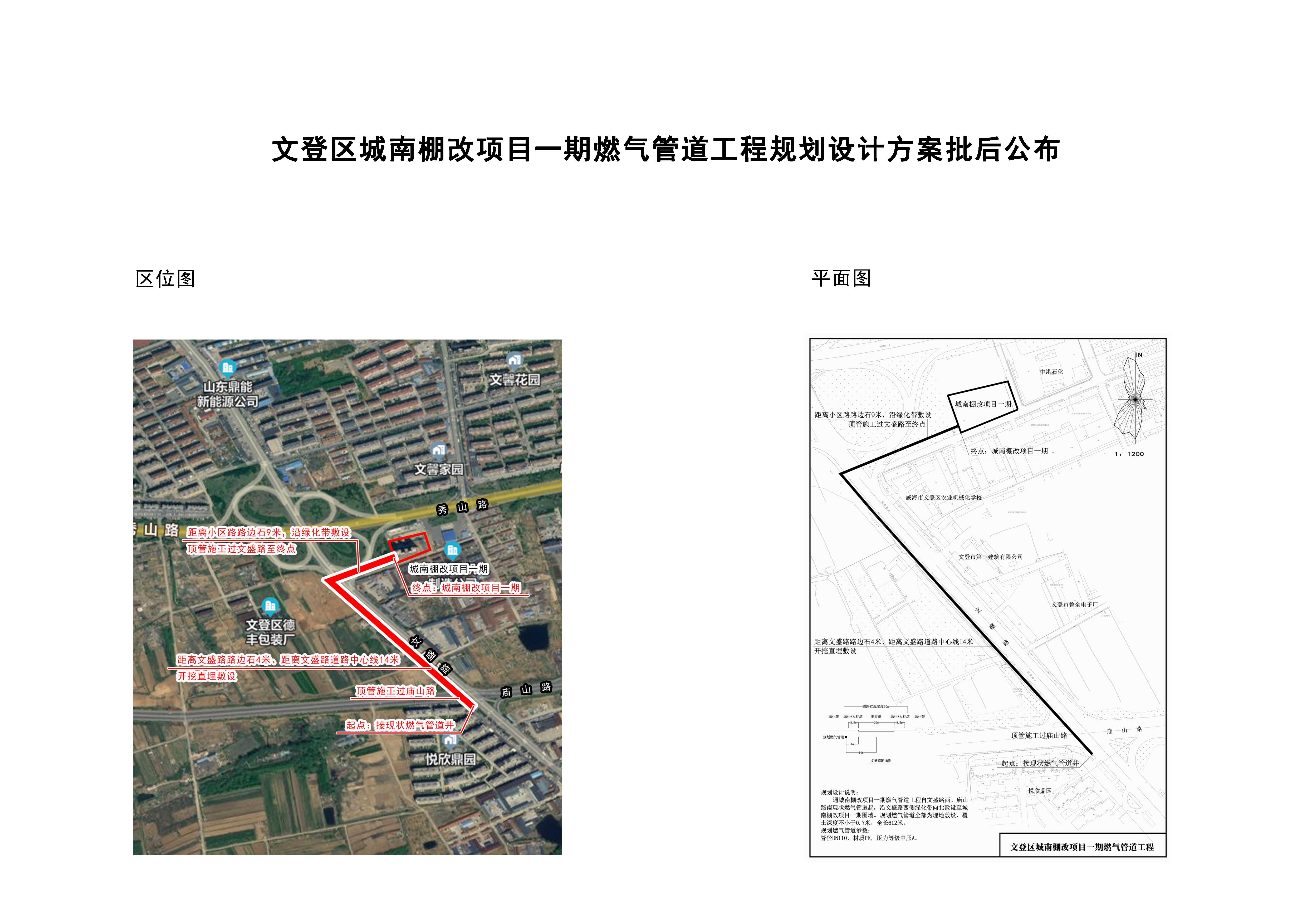 文登区城南棚改项目一期燃气管道工程规划设计方案批后公布