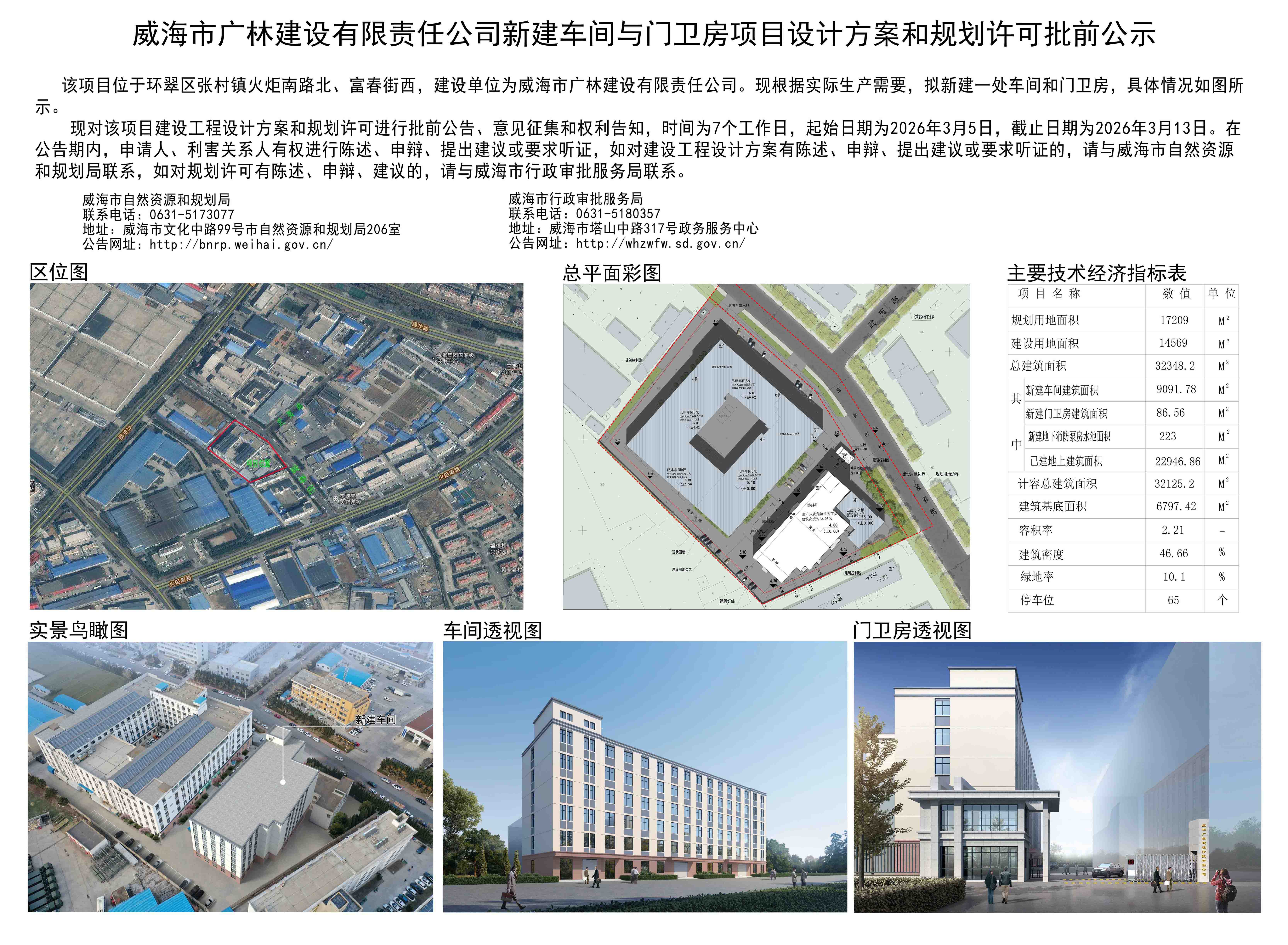 威海市广林建设有限责任公司新建车间与门卫房项目建设工程设计方案和规划许可批前公示