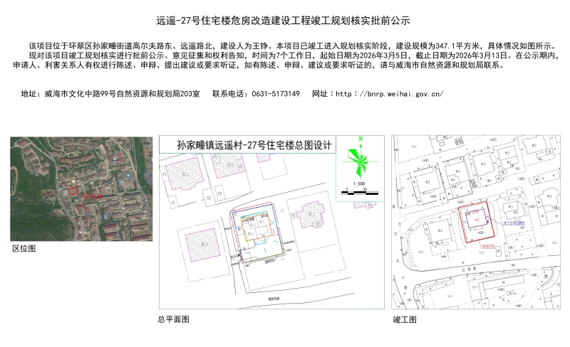 远遥27号住宅楼危房改造建设工程竣工规划核实批前公示
