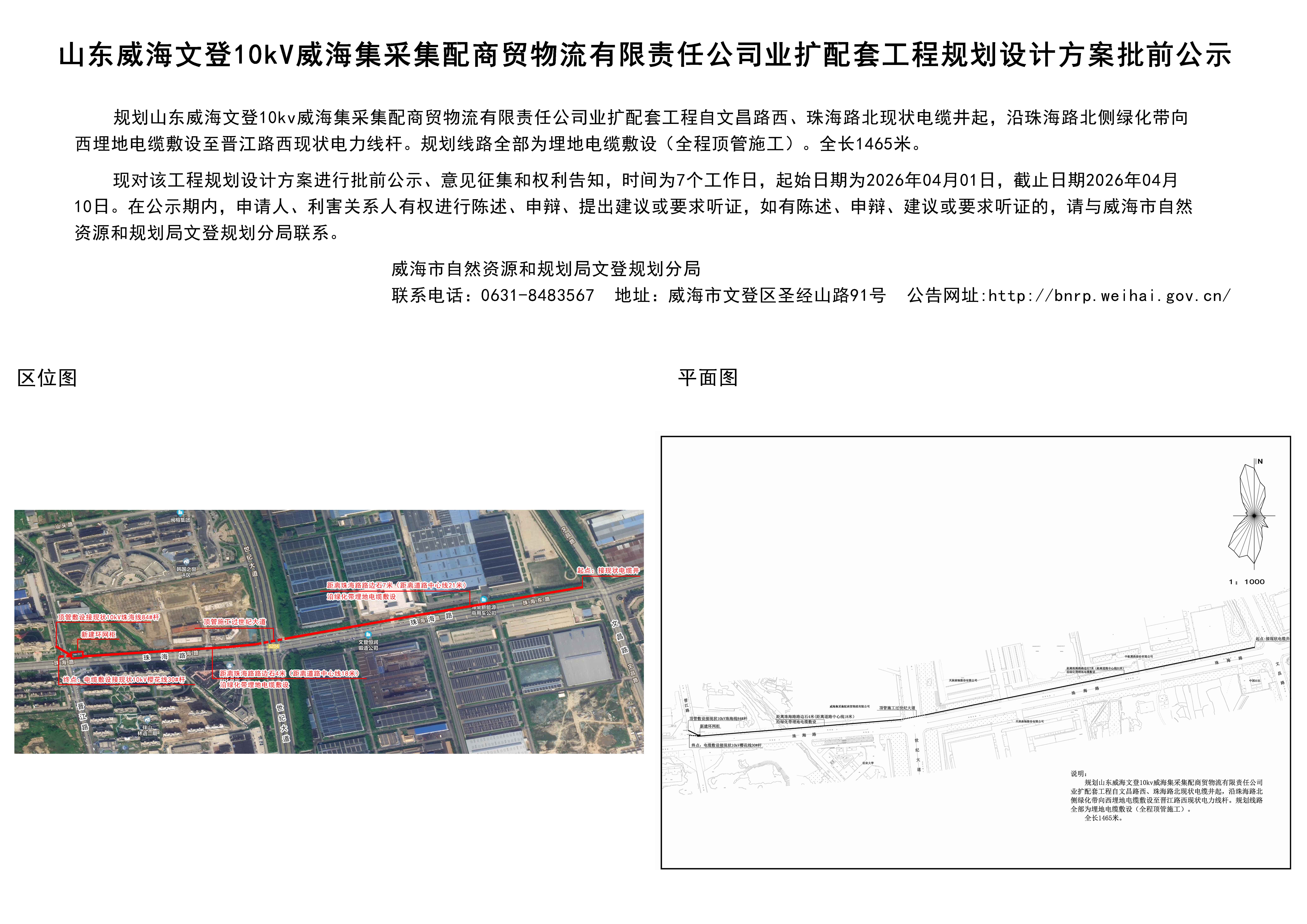 山东威海文登10kV威海集采集配商贸物流有限责任公司业扩配套工程规划设计方案批前公示