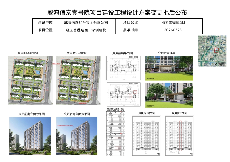 威海信泰壹号院项目建设工程设计方案变更批后公布
