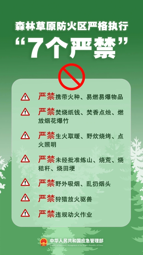 亲爱的老师们、同学们,尊敬的家长朋友们: 根据《森林草原防灭火条例》《威海市森林防火规定》,我市森林防火期为每年11月1日至次年5月31日。当前正值森林高火险期,风干物燥、植被干枯,火险等级持续偏高。结合我市2026年春假安排,4月30日、5月6日、5月7日与五一假期相连,形成8天连休期,市民进山踏青、旅游游玩、野外活动大幅增多,野外火源管控难度显著加大,森林防火形势十分严峻。为坚决防范化解火灾风险,守护生态安全,我们向全市广大学生及家长朋友们发出如下倡议: 一、争做法规普及的宣传员,让防火意识深入人心。希望家长和同学们主动学习森林防火法律法规,充分利用8天长假,主动向家人、亲友宣传“七个严禁”“六个要”等防火要求,积极营造防火氛围。 二、争做遵规守纪的践行员,让文明用火成为习惯。严格遵守森林防火各项规定,进入林区自觉配合检查登记,主动扫描“防火码”。坚决不携带打火机、火柴及易燃易爆物品进入林区;不在林区及边缘吸烟、焚烧纸钱香烛、野炊烧烤、焚烧垃圾、燃放烟花爆竹、放飞孔明灯等。 三、争做火源管控的守护员,让隐患消除于未然。家长要切实履行监护责任,加强对孩子的安全教育,坚决杜绝因未成年人玩火引发火灾。进入景区游玩时,严格遵守防火规定,主动排查身边隐患,做到防患于未然。 四、争做群防群治的监督员,让安全防线更加牢固。森林防火人人有责,大家要相互监督、相互提醒。一旦发现火情或违规用火行为,务必保持冷静,第一时间拨打“110”“119”报警。时刻牢记“生命至上、安全第一”,未经专业培训的人员严禁擅自上山扑火,坚决避免发生人身安全事故。 家长朋友们、同学们,春假是休闲放松的美好时光,更是森林防火的关键时期。守护森林资源,功在当代,利在千秋。让我们携手并肩,从我做起、从现在做起,共同筑牢防范森林火灾的坚固防线,守护好威海的绿水青山,为建设人与自然和谐共生的美丽家园贡献自己的一份力量! 威海市森林防灭火指挥部办公室 | ||||