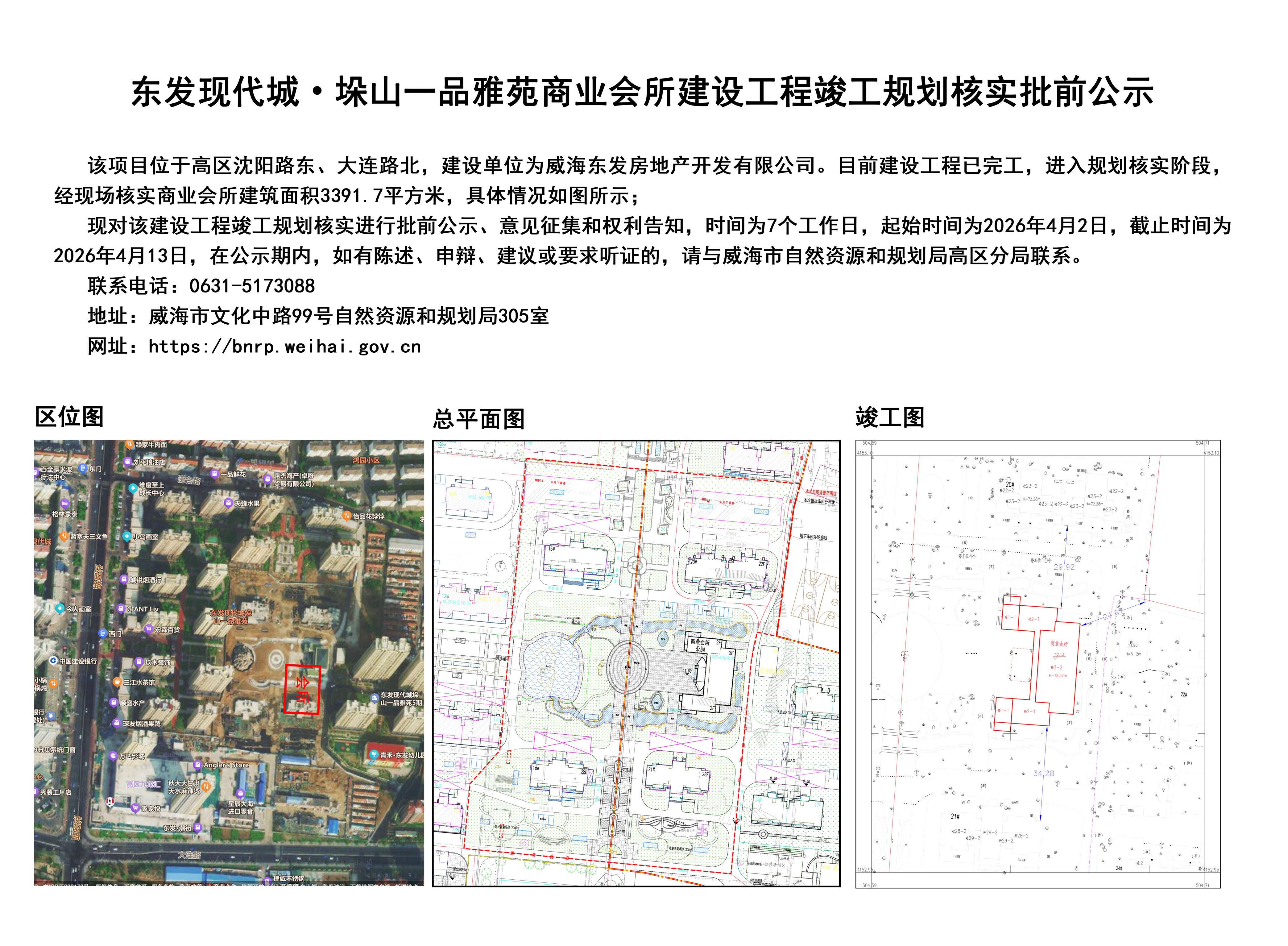 东发现代城·垛山一品雅苑商业会所建设工程竣工规划核实批前公示