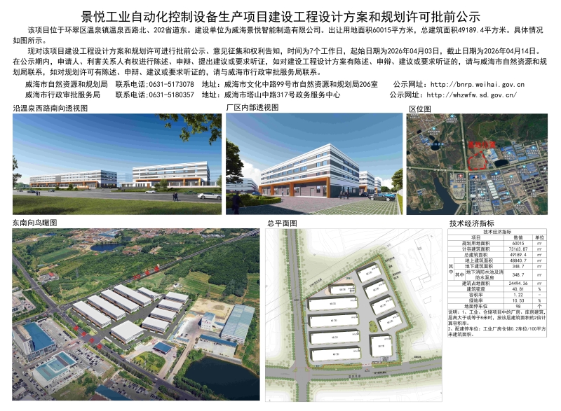 景悦工业自动化控制设备生产项目建设工程设计方案和规划许可批前公示