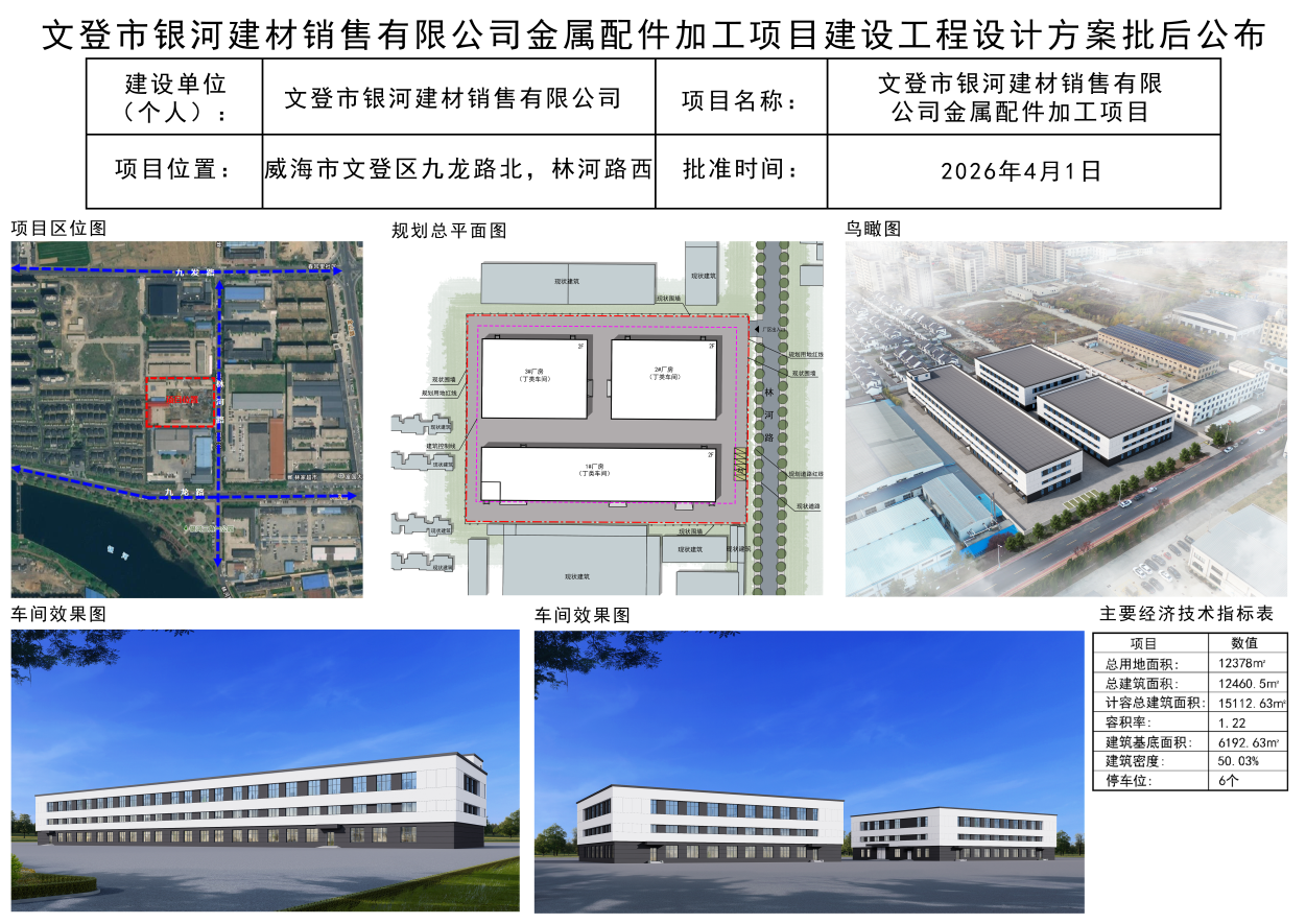 文登市银河建材销售有限公司金属配件加工项目建设工程设计方案批后公布