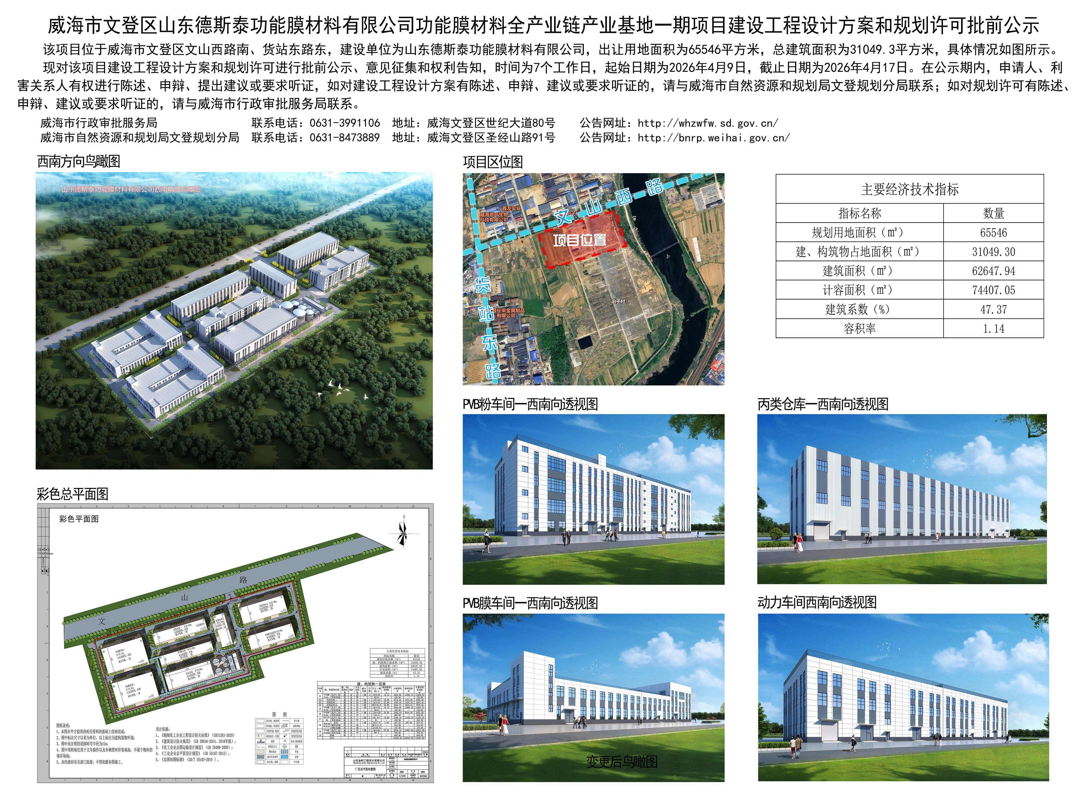 威海市文登区山东德斯泰功能膜材料有限公司功能膜材料全产业链产业基地一期项目建设工程设计方案和规划许可批前公示