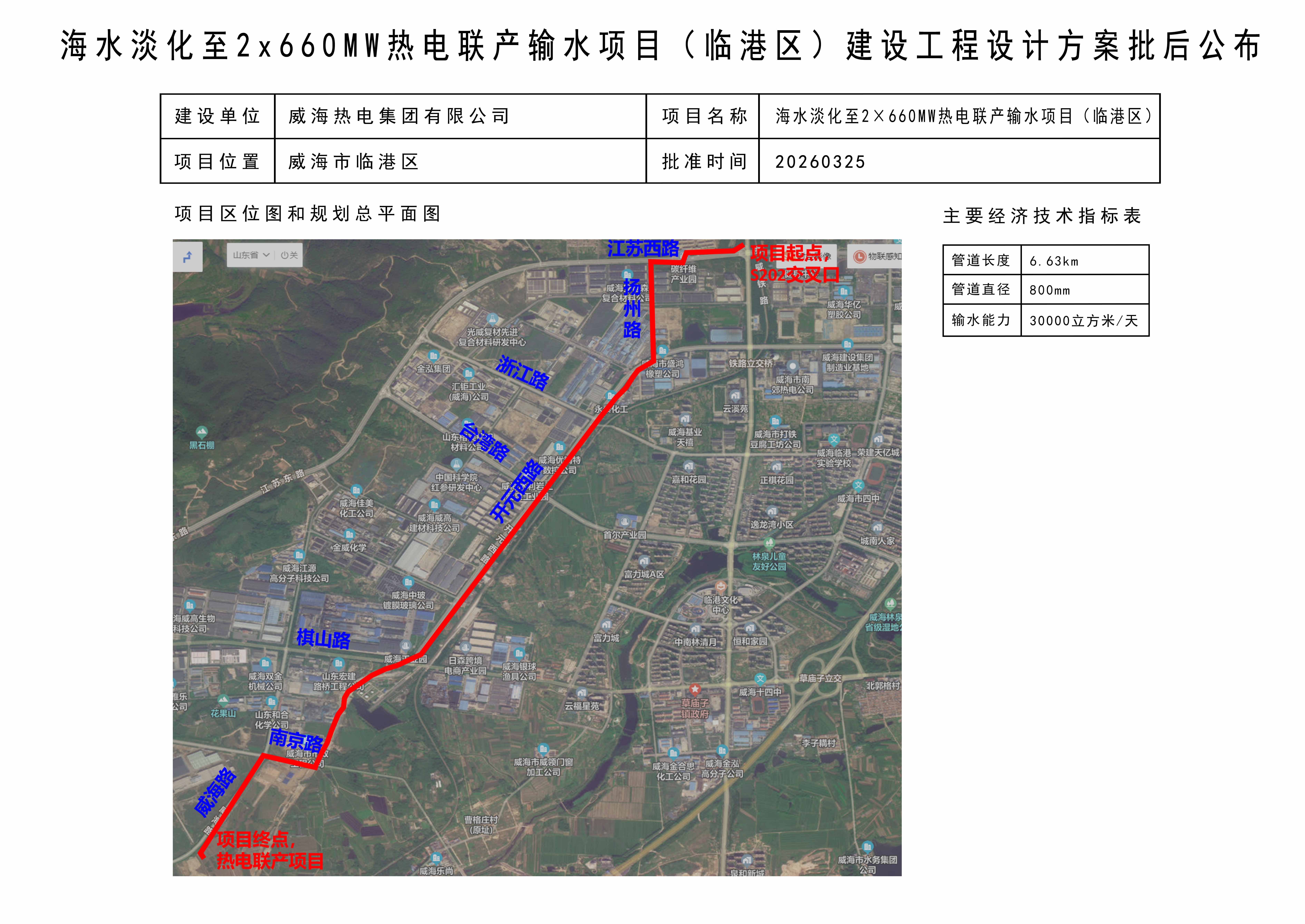 海水淡化至2×660MW热电联产输水项目(临港区)建设工程设计方案批后公布