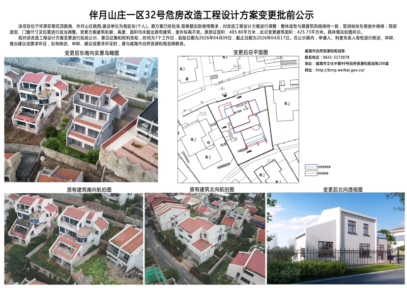 伴月山庄一区32号危房改造工程设计方案变更批前公示
